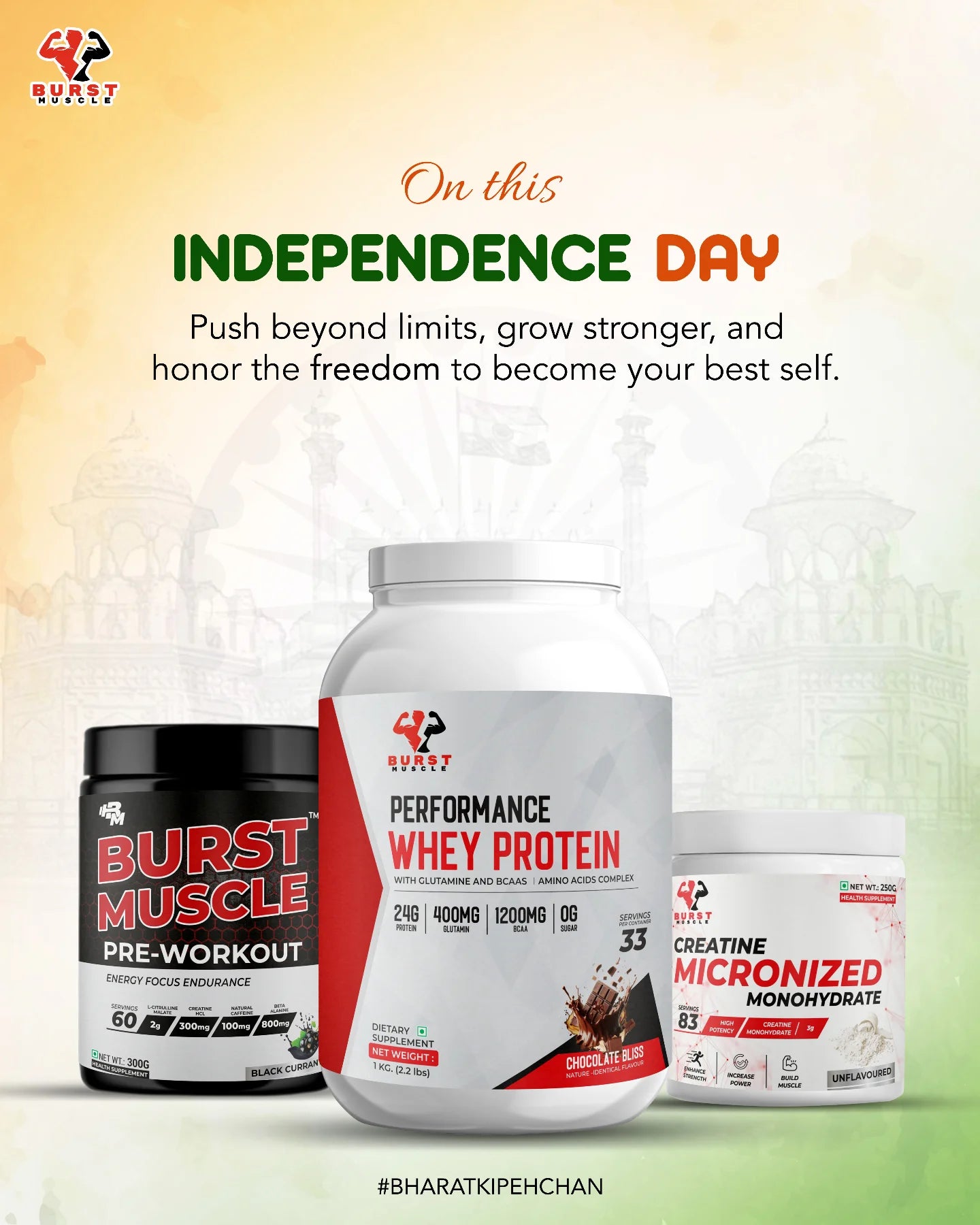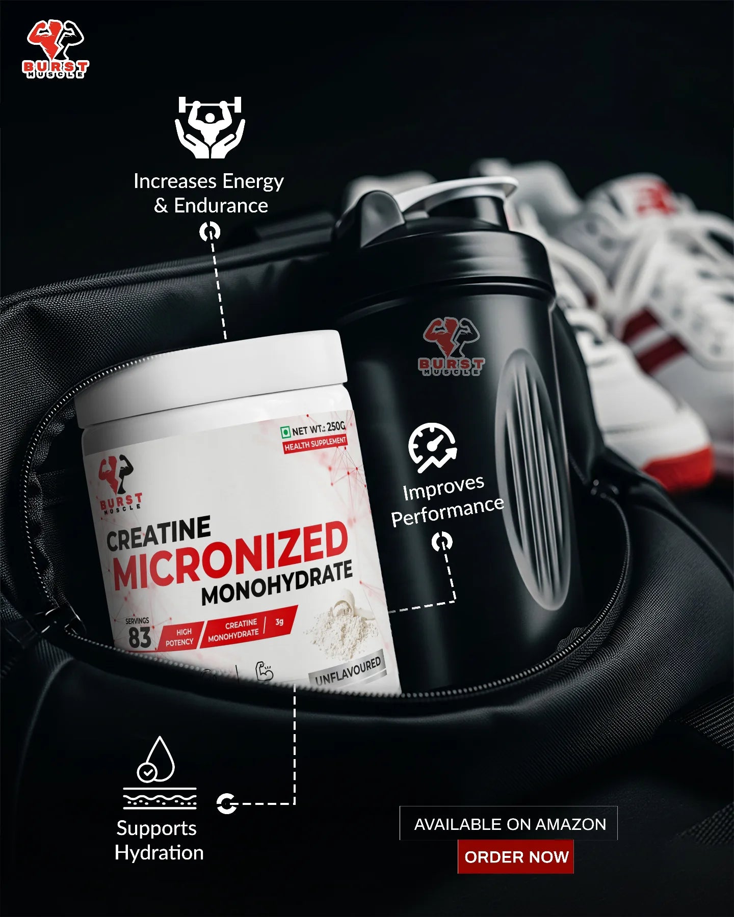 Unleash your full training potential with BURSTMUSCLE Pre-Workout, a power-packed formula designed to deliver explosive energy, laser-sharp focus, and skin-splitting pumps. Engineered with clinically researched ingredients in the right dosages, this pre-workout fuels you to go harder, last longer, and achieve your next level of performance.